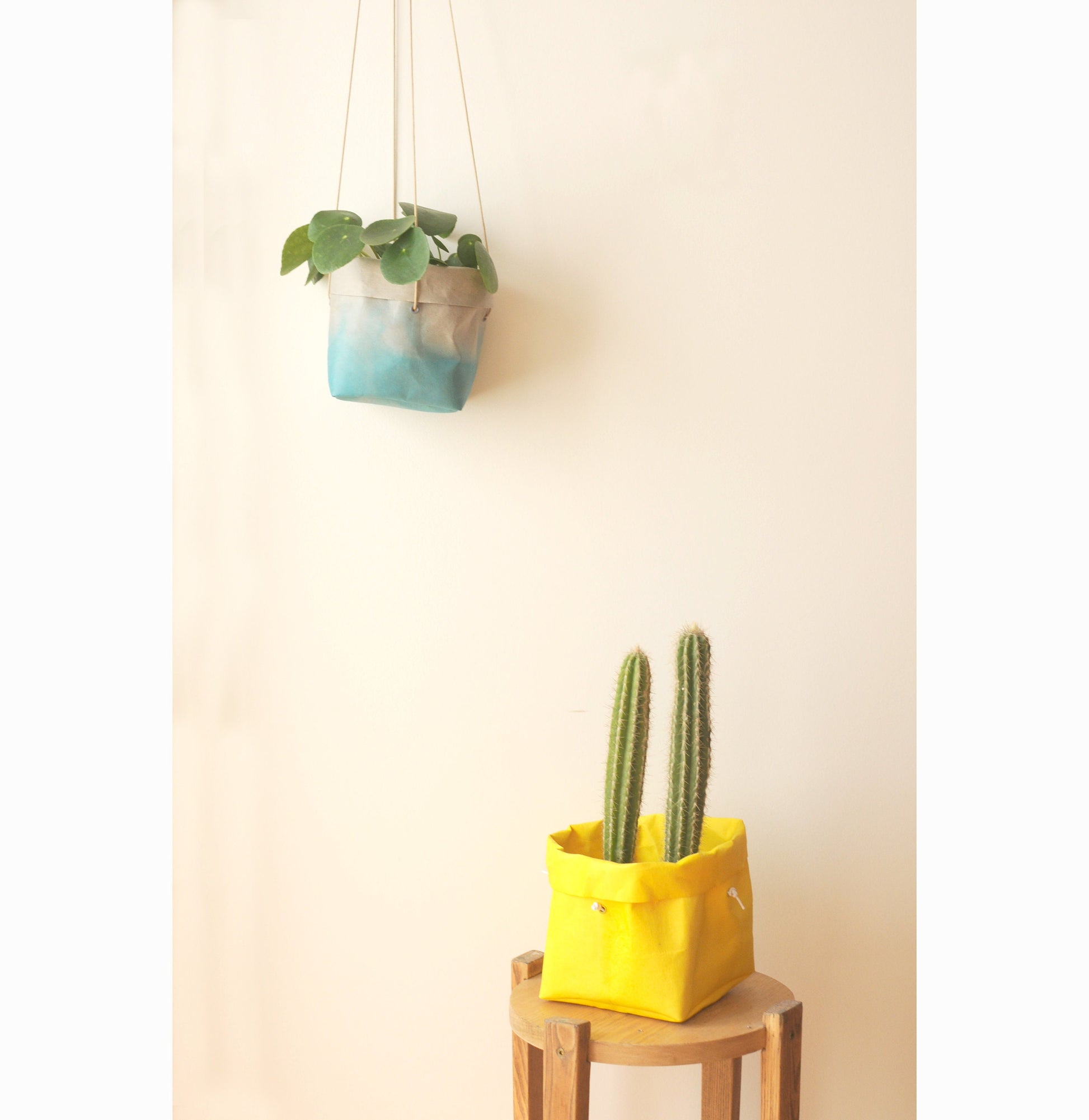Summer planter, hanging paper planter made from washable paper